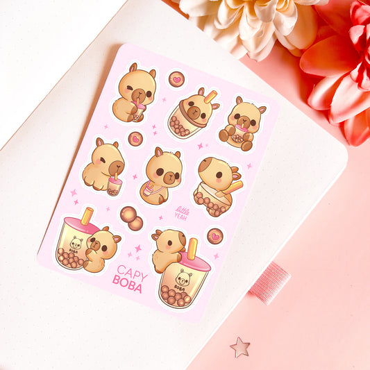 Capybara with Boba Tea - Cute Sticker Sheet