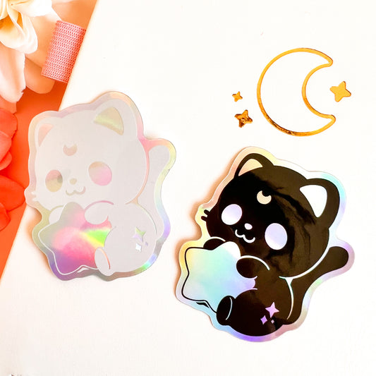 Cat holding Star - Cute Holographic Vinyl Sticker