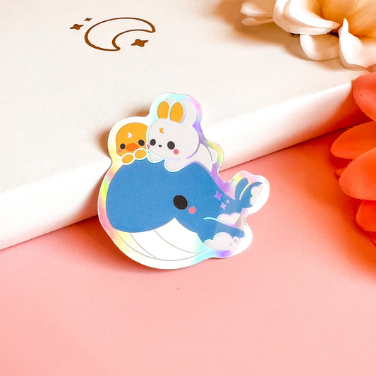 Starry Whale Flight - Cute Holographic Vinyl Sticker