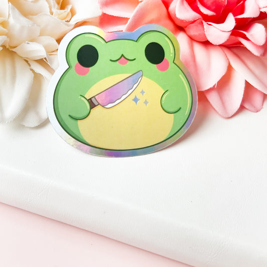 Frog with Knife - Cute Holographic Vinyl Sticker
