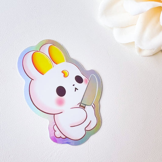 Bunny with Knife- Cute Holographic Vinyl Sticker