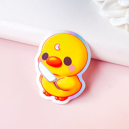 Piyo with Knife - Cute Holographic Vinyl Sticker