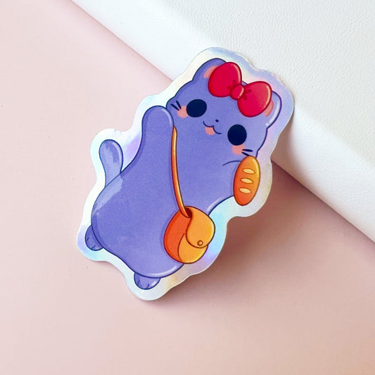 Cat with Ribbon - Cute Holographic Vinyl Sticker
