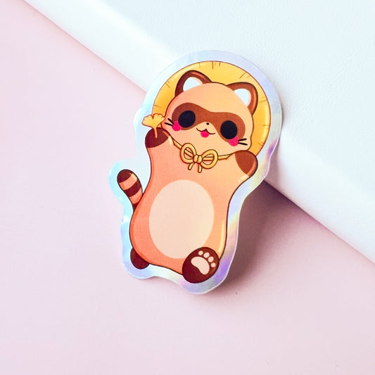 Tanuki Cat - Cute Holographic Vinyl Sticker