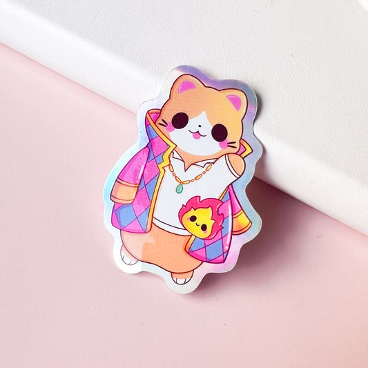 Cat with Fire spirit - Cute Holographic Vinyl Sticker