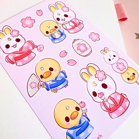 Sakura Bunny and Duck - Cute Sticker Sheet