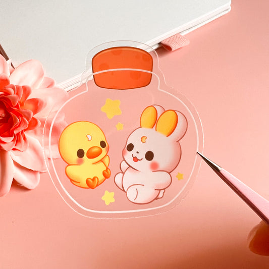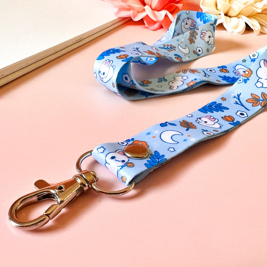 Moon Bunny with Flower Pattern - Cute Lanyard