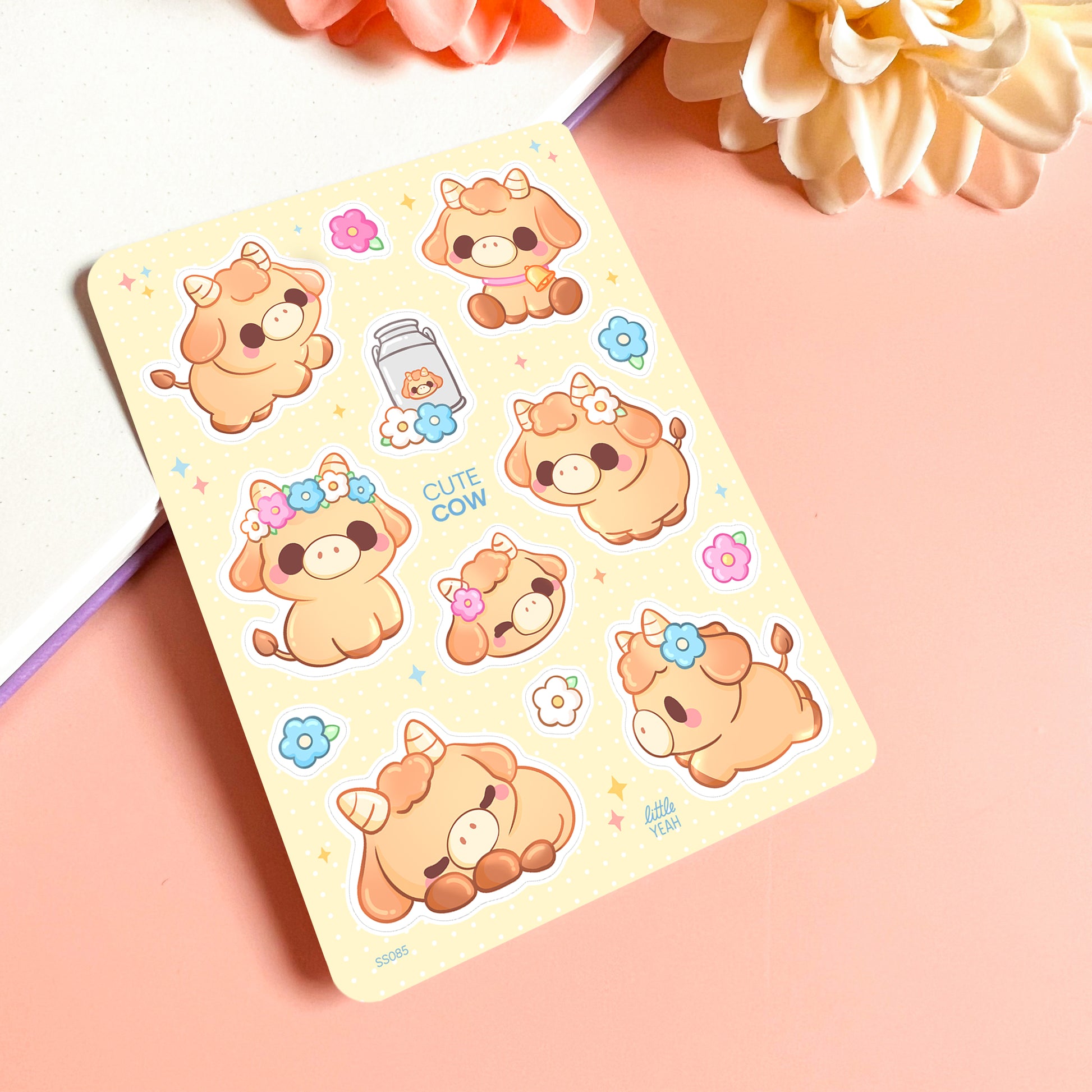 This gentle moo cutie brings calm meadow vibes and lots of soft charm to your day. Each sticker shows the little cow surrounded by blossoms, spreading peace and happiness wherever you place them. Perfect for decorating your journal, laptop, phone case or anywhere that needs a touch of kawaii and nature love